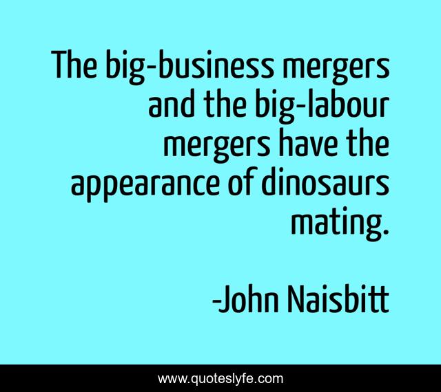 This page presents the quote "The big-business mergers and the big-labour mergers have the appearance of dinosaurs mating.". Author of this quote is John Naisbitt. .