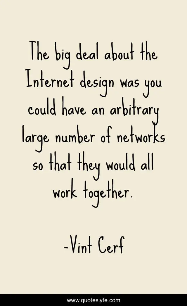 "Vint Cerf Quotes." Quoteslyfe.com, 2025. Sat. 06 Dec. 2025. <https://www.quoteslyfe.com/quote/The-big-deal-about-the-Internet-design-314483>.
