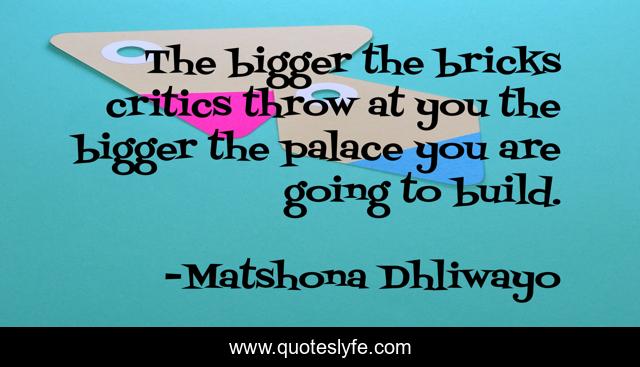 "Matshona Dhliwayo Quotes." Quoteslyfe.com, 2025. Fri. 05 Dec. 2025. <https://www.quoteslyfe.com/quote/The-bigger-the-bricks-critics-throw-at-83520>.