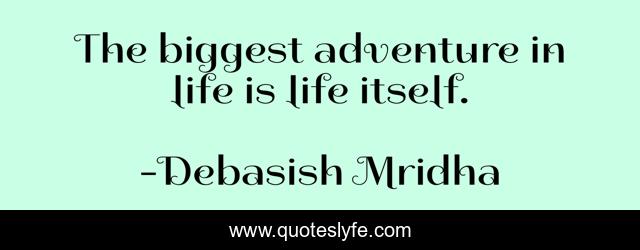 This page presents the quote "The biggest adventure in life is life itself.". Author of this quote is Debasish Mridha. This quote is about life, philosophy, debasish-mridha, debasish-mridha-m-d, quotes, adventure, inspirational, enthusiasm, biggest-adventure,.