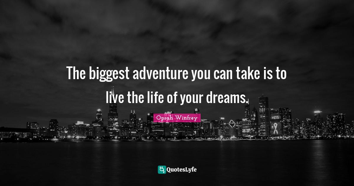 This page presents the quote "The biggest adventure you can take is to live the life of your dreams.". Author of this quote is Oprah Winfrey. This quote is about life, adventure, dreams, oprah,.