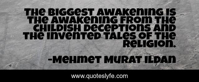 This page presents the quote "The biggest awakening is the awakening from the childish deceptions and the invented tales of the religion.". Author of this quote is Mehmet Murat ildan. .