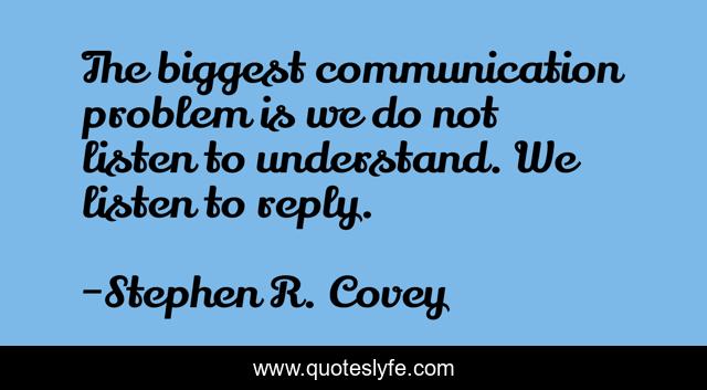 This page presents the quote "The biggest communication problem is we do not listen to understand. We listen to reply.". Author of this quote is Stephen R. Covey. This quote is about communication-skills, communication, listening-skills, stephen-r-covey, listening-to-others, listening, communication-problems,.