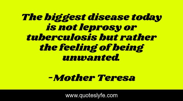 "Mother Teresa Quotes." Quoteslyfe.com, 2025. Sat. 06 Dec. 2025. <https://www.quoteslyfe.com/quote/The-biggest-disease-today-is-not-leprosy-270535>.
