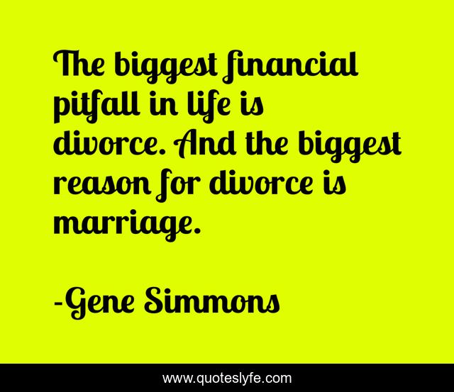 This page presents the quote "The biggest financial pitfall in life is divorce. And the biggest reason for divorce is marriage.". Author of this quote is Gene Simmons. This quote is about divorce, life, financial,.