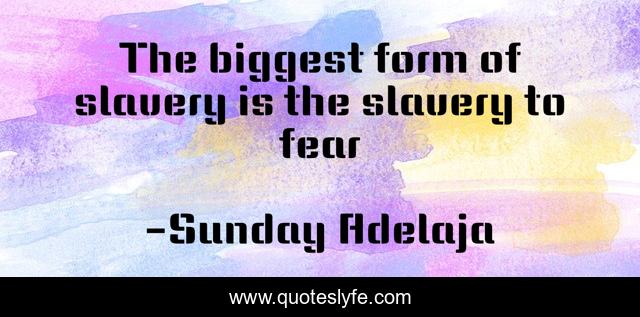 This page presents the quote "The biggest form of slavery is the slavery to fear". Author of this quote is Sunday Adelaja. This quote is about biggest, fear, slavery, form,.