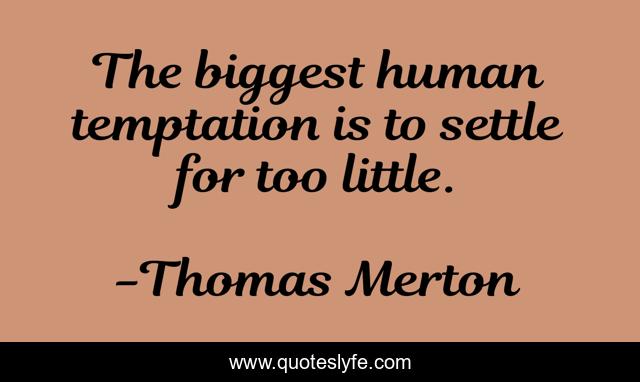 This page presents the quote "The biggest human temptation is to settle for too little.". Author of this quote is Thomas Merton. This quote is about settling, confidence,.