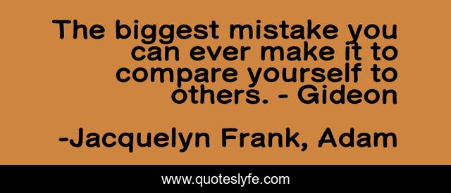 This page presents the quote "The biggest mistake you can ever make it to compare yourself to others. - Gideon". Author of this quote is Jacquelyn Frank, Adam. This quote is about comparing, jealousy, mistake,.