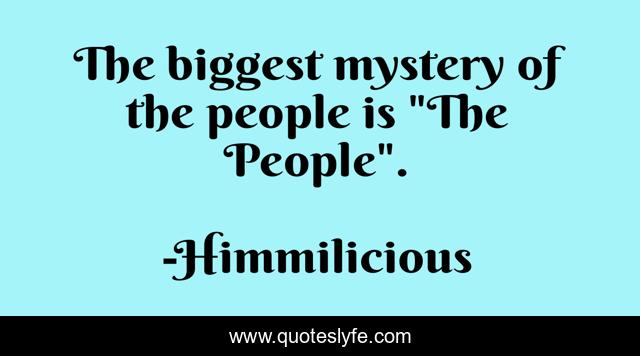 This page presents the quote "The biggest mystery of the people is "The People".". Author of this quote is Himmilicious. This quote is about society, people,.