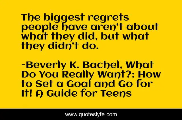 "Beverly K. Bachel, What Do You Really Want?: How to Set a Goal and Go for It! A Guide for Teens Quotes." Quoteslyfe.com, 2025. Fri. 05 Dec. 2025. <https://www.quoteslyfe.com/quote/The-biggest-regrets-people-have-aren-t-148599>.