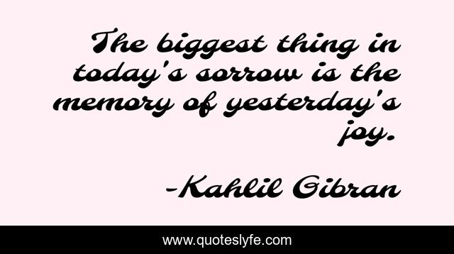 This page presents the quote "The biggest thing in today's sorrow is the memory of yesterday's joy.". Author of this quote is Kahlil Gibran. .