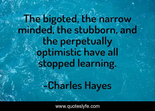 This page presents the quote "The bigoted, the narrow minded, the stubborn, and the perpetually optimistic have all stopped learning.". Author of this quote is Charles Hayes. .