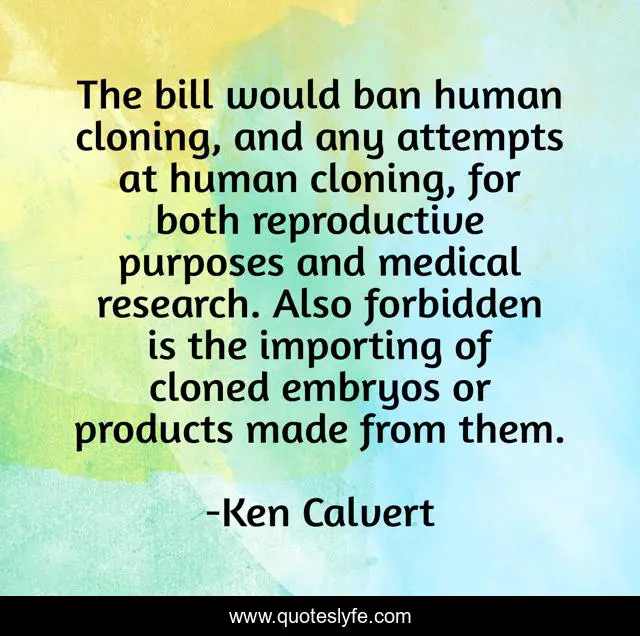 "Ken Calvert Quotes." Quoteslyfe.com, 2025. Mon. 08 Dec. 2025. <https://www.quoteslyfe.com/quote/The-bill-would-ban-human-cloning-and-309827>.