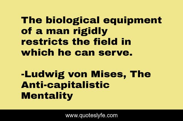 This page presents the quote "The biological equipment of a man rigidly restricts the field in which he can serve.". Author of this quote is Ludwig von Mises, The Anti-capitalistic Mentality. This quote is about biology, economics, education, skill, labor,.