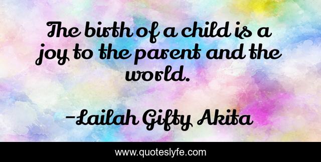 This page presents the quote "The birth of a child is a joy to the parent and the world.". Author of this quote is Lailah Gifty Akita. This quote is about parenthood, joy-of-parenthood, parent, birth-rights, parenting-children, parental-love, joy-of-life, birthday, birth,.