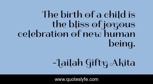 This page presents the quote "The birth of a child is the bliss of joyous celebration of new human being.". Author of this quote is Lailah Gifty Akita. This quote is about life-philosophy, human-being, celebration, child-birth, wise-sayings,.