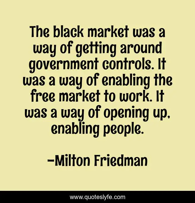 This page presents the quote "The black market was a way of getting around government controls. It was a way of enabling the free market to work. It was a way of opening up, enabling people.". Author of this quote is Milton Friedman. This quote is about work, free, people,.