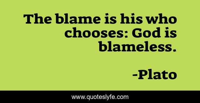 This page presents the quote "The blame is his who chooses: God is blameless.". Author of this quote is Plato. This quote is about blame, his,.