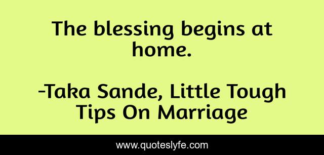 This page presents the quote "The blessing begins at home.". Author of this quote is Taka Sande, Little Tough Tips On Marriage. .