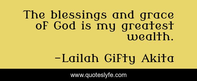 This page presents the quote "The blessings and grace of God is my greatest wealth.". Author of this quote is Lailah Gifty Akita. This quote is about god, blessings, wealth,.