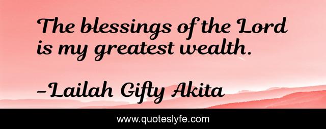 This page presents the quote "The blessings of the Lord is my greatest wealth.". Author of this quote is Lailah Gifty Akita. This quote is about blessings, god-s-grace,.