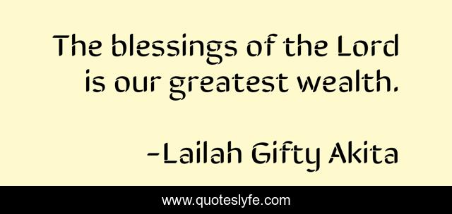 This page presents the quote "The blessings of the Lord is our greatest wealth.". Author of this quote is Lailah Gifty Akita. This quote is about financial-advice, spiritual, finance, blessings-in-disguise, blessed-life, financial-freedom, blessing-of-wealth, blessings, wealth-strategies,.