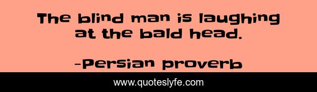 This page presents the quote "The blind man is laughing at the bald head.". Author of this quote is Persian proverb. This quote is about quips, comments,.