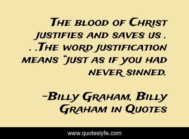 "Billy Graham, Billy Graham in Quotes Quotes." Quoteslyfe.com, 2025. Fri. 05 Dec. 2025. <https://www.quoteslyfe.com/quote/The-blood-of-Christ-justifies-and-saves-152471>.