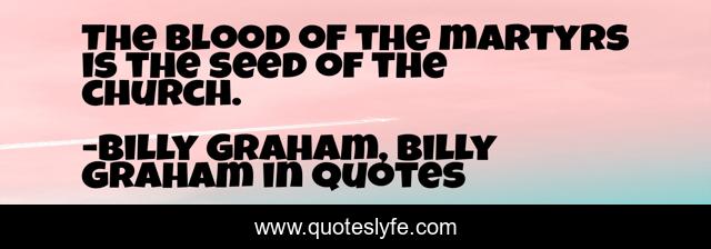 This page presents the quote "The blood of the martyrs is the seed of the church.". Author of this quote is Billy Graham, Billy Graham in Quotes. This quote is about billy-graham, church,.