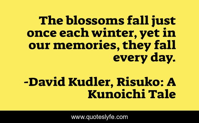 "David Kudler, Risuko: A Kunoichi Tale Quotes." Quoteslyfe.com, 2025. Sat. 06 Dec. 2025. <https://www.quoteslyfe.com/quote/The-blossoms-fall-just-once-each-winter-98314>.