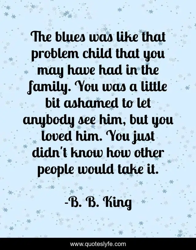 This page presents the quote "The blues was like that problem child that you may have had in the family. You was a little bit ashamed to let anybody see him, but you loved him. You just didn't know how other people would take it.". Author of this quote is B. B. King. This quote is about problem, child, people,.