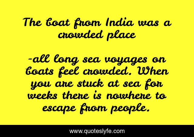 "all long sea voyages on boats feel crowded. When you are stuck at sea for weeks there is nowhere to escape from people. Quotes." Quoteslyfe.com, 2025. Fri. 05 Dec. 2025. <https://www.quoteslyfe.com/quote/The-boat-from-India-was-a-crowded-174421>.