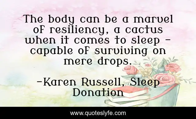 This page presents the quote "The body can be a marvel of resiliency, a cactus when it comes to sleep - capable of surviving on mere drops.". Author of this quote is Karen Russell, Sleep Donation. .