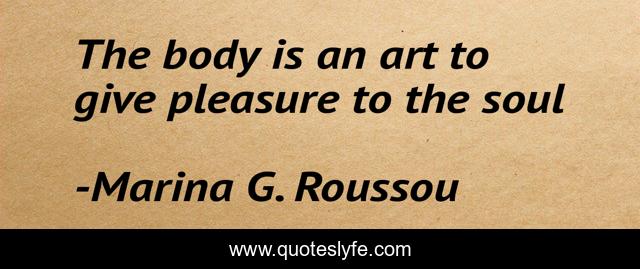 This page presents the quote "The body is an art to give pleasure to the soul". Author of this quote is Marina G. Roussou. This quote is about body, pleasure, art, soul, give,.