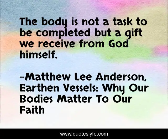 "Matthew Lee Anderson, Earthen Vessels: Why Our Bodies Matter To Our Faith Quotes." Quoteslyfe.com, 2025. Fri. 05 Dec. 2025. <https://www.quoteslyfe.com/quote/The-body-is-not-a-task-to-245024>.