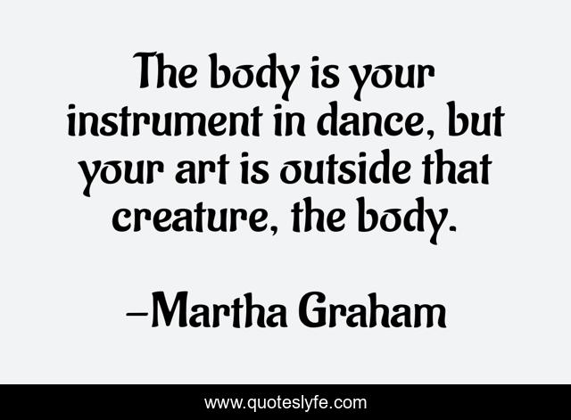 This page presents the quote "The body is your instrument in dance, but your art is outside that creature, the body.". Author of this quote is Martha Graham. This quote is about dance, body, outside,.