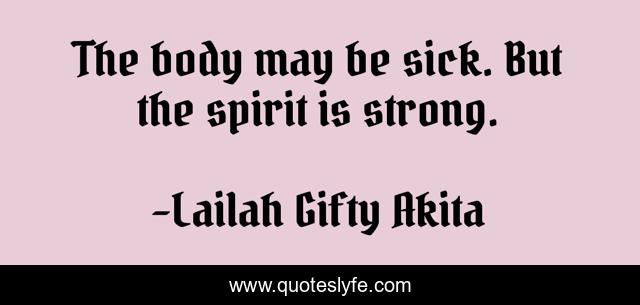 This page presents the quote "The body may be sick. But the spirit is strong.". Author of this quote is Lailah Gifty Akita. This quote is about positive-thinking, healing, spirit,.