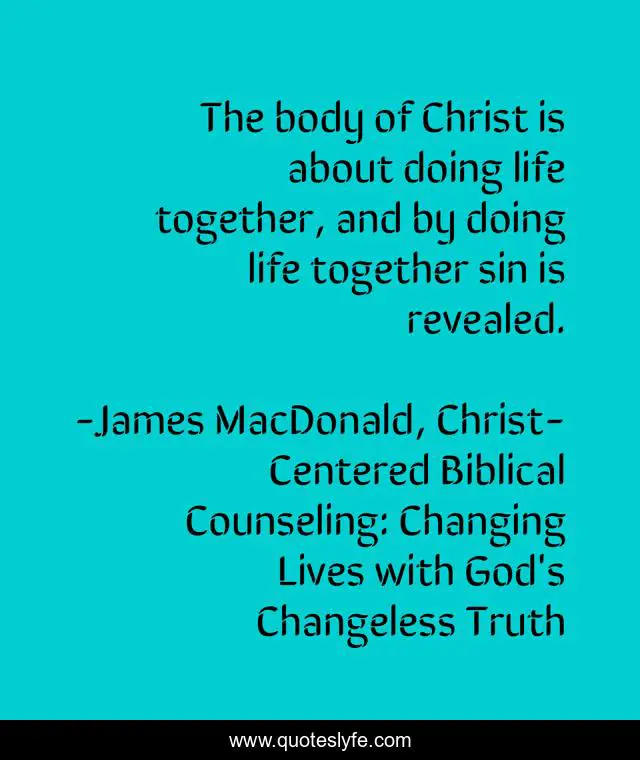 This page presents the quote "The body of Christ is about doing life together, and by doing life together sin is revealed.". Author of this quote is James MacDonald, Christ-Centered Biblical Counseling: Changing Lives with God's Changeless Truth. .