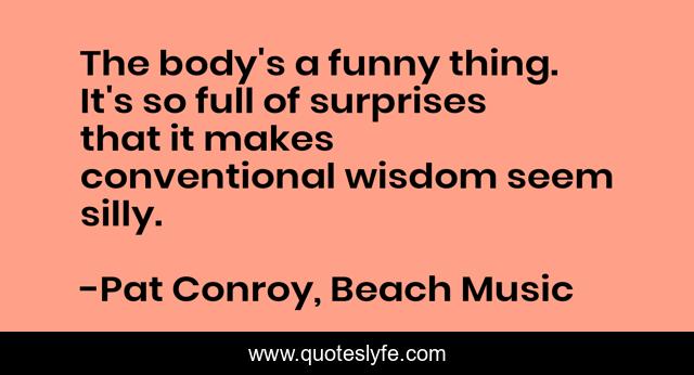 This page presents the quote "The body's a funny thing. It's so full of surprises that it makes conventional wisdom seem silly.". Author of this quote is Pat Conroy, Beach Music. .