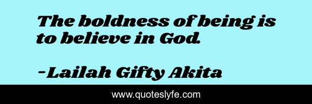 This page presents the quote "The boldness of being is to believe in God.". Author of this quote is Lailah Gifty Akita. This quote is about faith, inspiring, christian, god, boldness, believe,.
