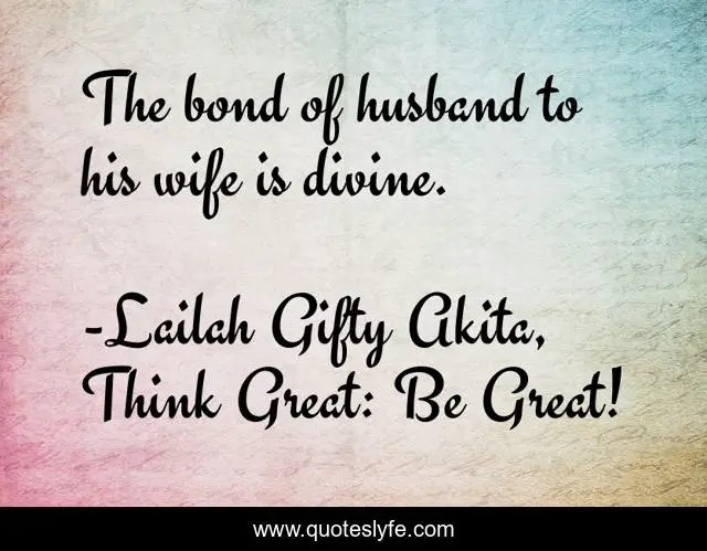 "Lailah Gifty Akita, Think Great: Be Great! Quotes." Quoteslyfe.com, 2025. Sun. 07 Dec. 2025. <https://www.quoteslyfe.com/quote/The-bond-of-husband-to-his-wife-77348>.