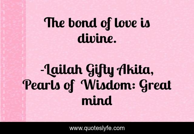 "Lailah Gifty Akita, Pearls of Wisdom: Great mind Quotes." Quoteslyfe.com, 2025. Sat. 06 Dec. 2025. <https://www.quoteslyfe.com/quote/The-bond-of-love-is-divine-207515>.