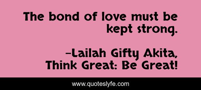 "Lailah Gifty Akita, Think Great: Be Great! Quotes." Quoteslyfe.com, 2025. Mon. 08 Dec. 2025. <https://www.quoteslyfe.com/quote/The-bond-of-love-must-be-kept-77383>.