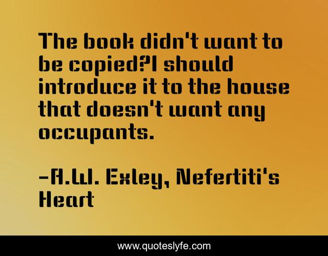 This page presents the quote "The book didn't want to be copied?I should introduce it to the house that doesn't want any occupants.". Author of this quote is A.W. Exley, Nefertiti's Heart. This quote is about irony, humor,.