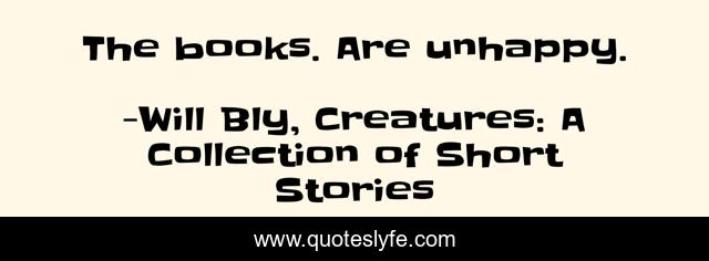 "Will Bly, Creatures: A Collection of Short Stories Quotes." Quoteslyfe.com, 2025. Tue. 09 Dec. 2025. <https://www.quoteslyfe.com/quote/The-books-Are-unhappy-232023>.