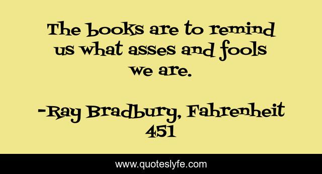 This page presents the quote "The books are to remind us what asses and fools we are.". Author of this quote is Ray Bradbury, Fahrenheit 451. This quote is about books, books-reading,.