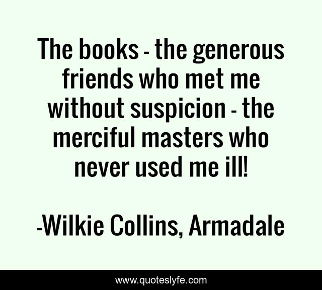 This page presents the quote "The books - the generous friends who met me without suspicion - the merciful masters who never used me ill!". Author of this quote is Wilkie Collins, Armadale. .