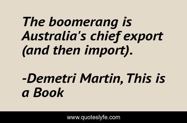This page presents the quote "The boomerang is Australia's chief export (and then import).". Author of this quote is Demetri Martin, This is a Book. .