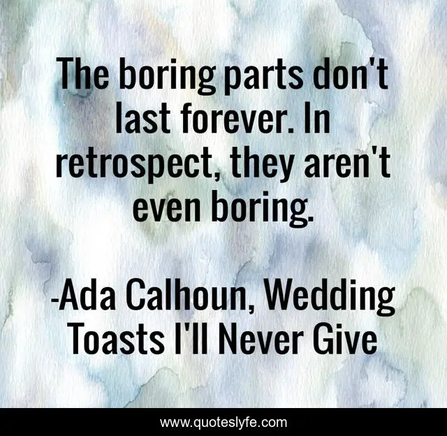 "Ada Calhoun, Wedding Toasts I'll Never Give Quotes." Quoteslyfe.com, 2025. Fri. 05 Dec. 2025. <https://www.quoteslyfe.com/quote/The-boring-parts-don-t-last-forever-76946>.