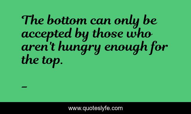 This page presents the quote "The bottom can only be accepted by those who aren't hungry enough for the top.". Author of this quote is . This quote is about edmond-mbiaka, aim-for-the-top, don-t-remain-at-the-bottom, making-it-to-the-top, being-hunger-for-the-top, hungry-for-the-top, aiming-for-the-top,.